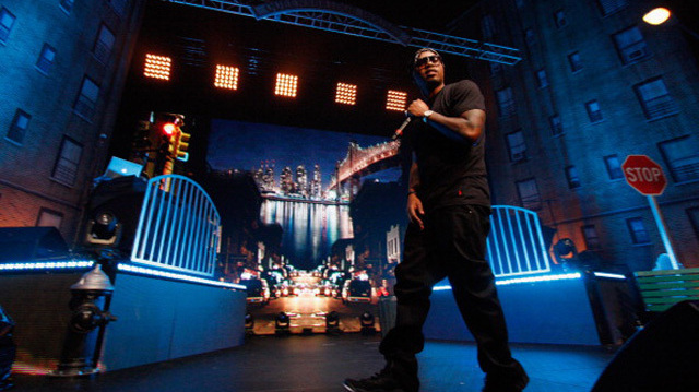 Nas performed similar Illmatic based sets on last year's brief Rock the Bells tour, and he brought his full stage set to Austin: a detailed replica of a New York streetscape, complete with tenements, graffiti, iron gates and his name in the flashing lights of the Great White Way. Joined by his fellow rapper AZ and his producers, Pete Rock and DJ Premiere, on 21st-century style decks, Nas reignited the intricate verse of Illmatic until the whole room throbbed with heat. Gesturing like a thespian, he gave a bravura performance that I believe would work on Broadway. Yes, he also promoted his new single, "The Don" — but this wasn't just another career-boosting South by Southwest performance for those fans dancing in the aisles and grinning from ear to ear, or for Nas, whose excitement at the crowd's reception was palpable. It was an event.