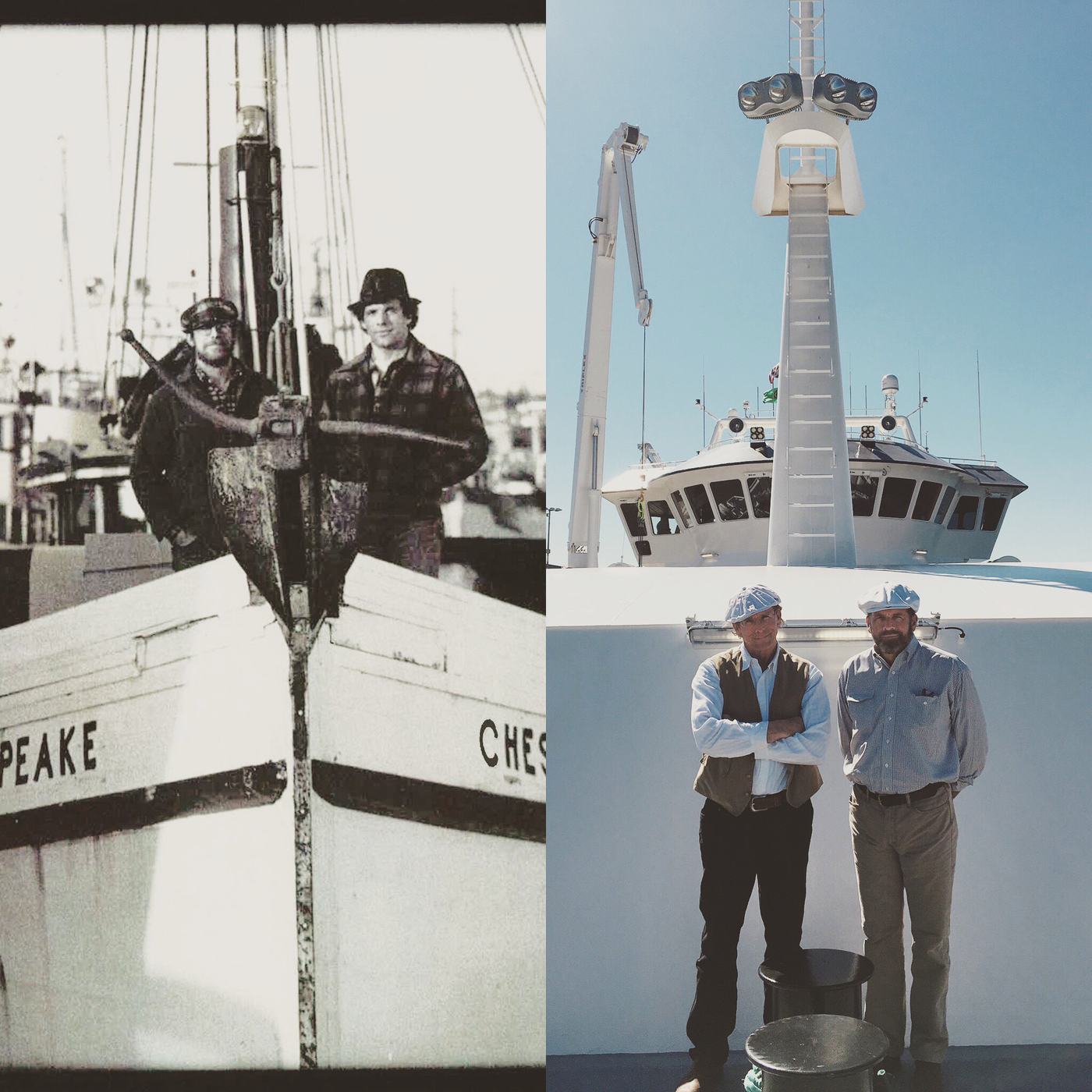 Brothers Michael (on the left in both photos) and Patrick Burns have spent decades as fishermen. But the inspiration for their humanely harvested seafood didn't come from the ocean. It came from their side business — a grass-fed cattle ranch — and from their deep admiration for scientist Temple Grandin and her advocacy of animal welfare and humane slaughter.