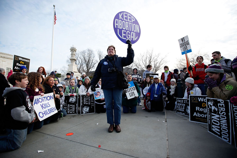 Pro-choice advocates form their line in front of the U.S. Supreme Court building.