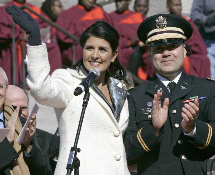 South Carolina Gov. Nikki Haley (R) and her husband, Michael Haley, at her inauguration in January 2011.