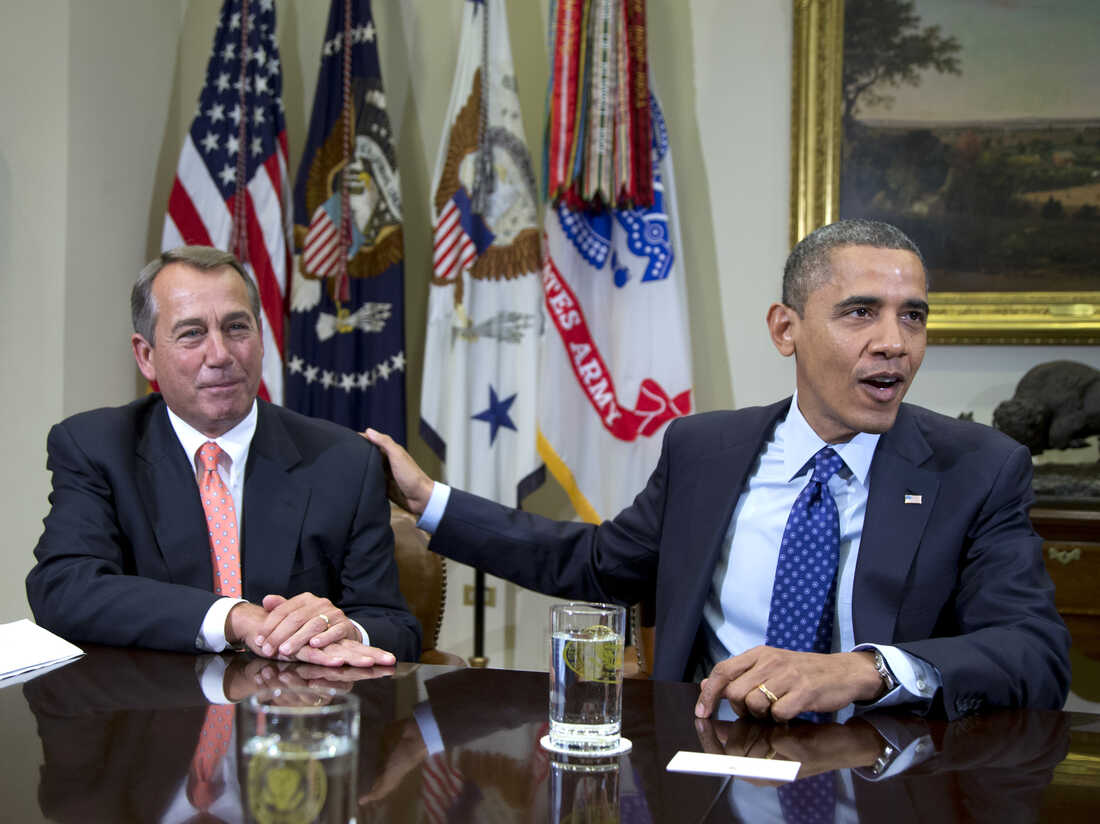 President Obama and House Speaker John Boehner at the White House on Nov. 16. Administration officials say the two men met Sunday to discuss the "fiscal cliff." Carolyn Kaster/AP hide caption