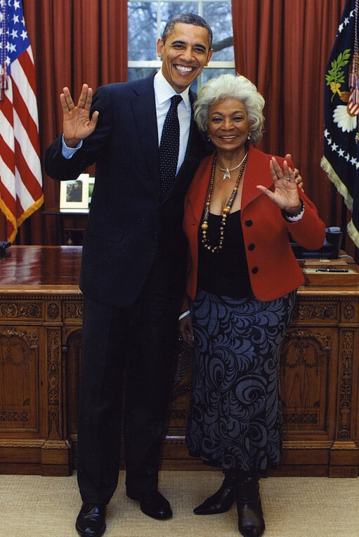 He does know about "live long and prosper." President Obama with actress Nichelle Nichols (Star Trek's Lt. Uhura) in the Oval Office one year ago.
