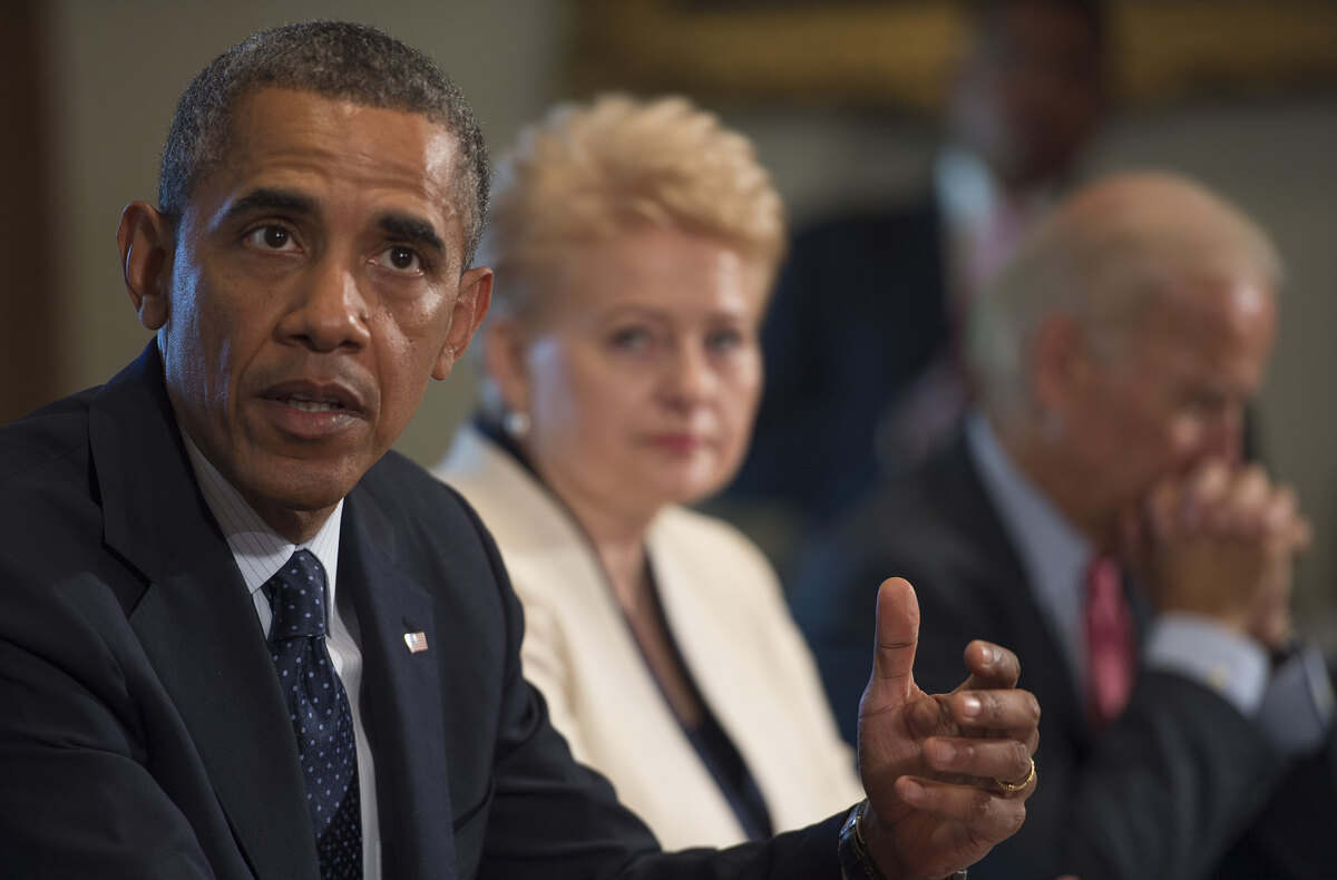 President Obama delivers a statement on Syria during a meeting with Lithuania's President Dalia Grybauskaite at the White House in Washington on Friday.