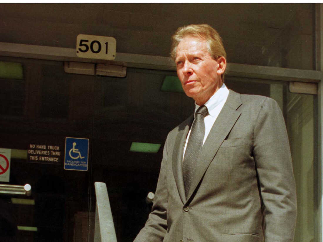 Harold Simmons stands by the Dallas courthouse entrance in October 1997. Simmons, the Texas billionaire, philanthropist and GOP donor, died Saturday in Dallas. He was 82. Flor Cordero /Reuters /Landov hide caption