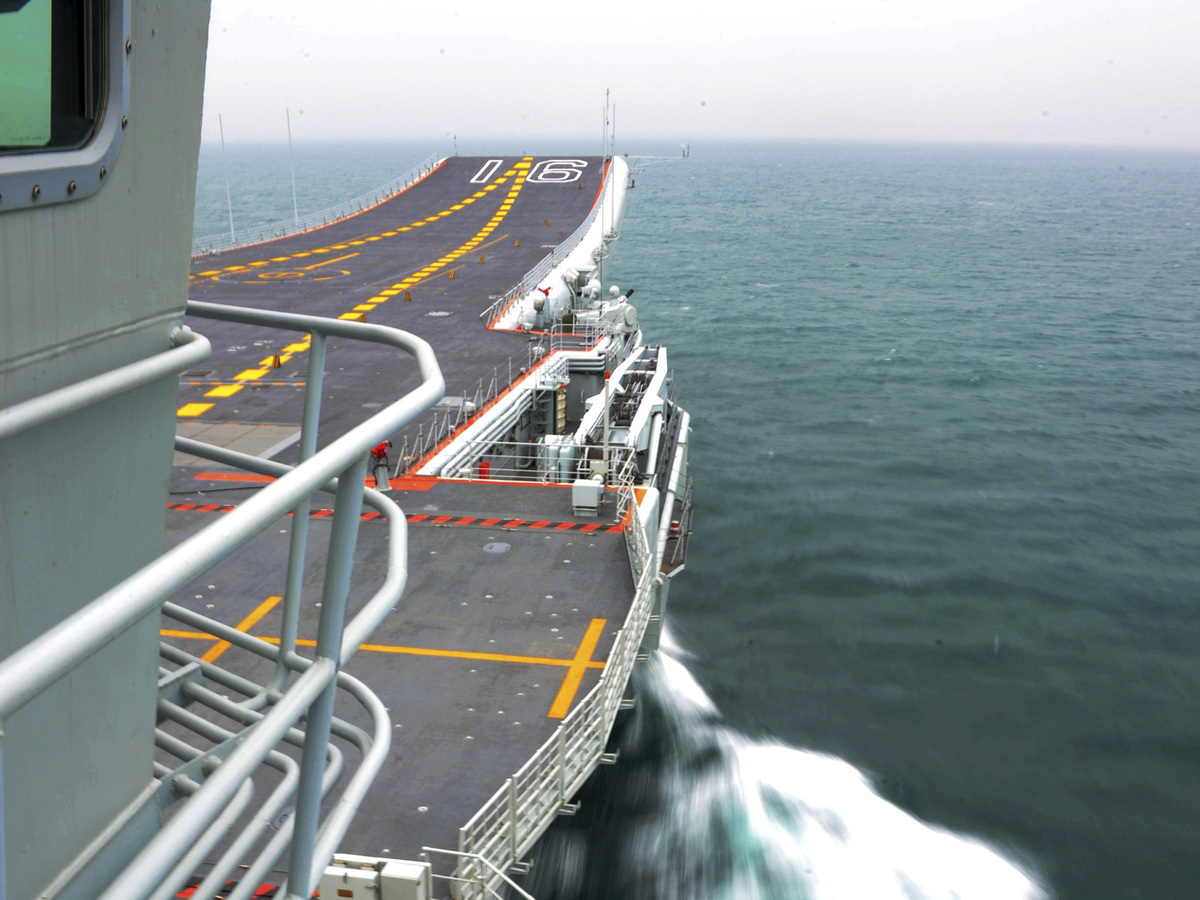 China's first aircraft carrier, Liaoning, cruises towards a military base in Sanya, Hainan province, in an undated picture made available in November.