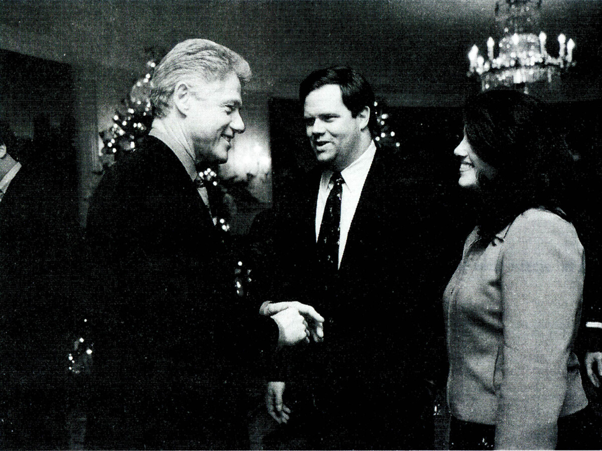 Former White House intern Monica Lewinsky meets President Clinton at the White House on Dec. 16, 1996. Lewinsky, whose affair with Clinton eventually led to his impeachment, has written an article in Vanity Fair in which she talks about her life after the scandal.