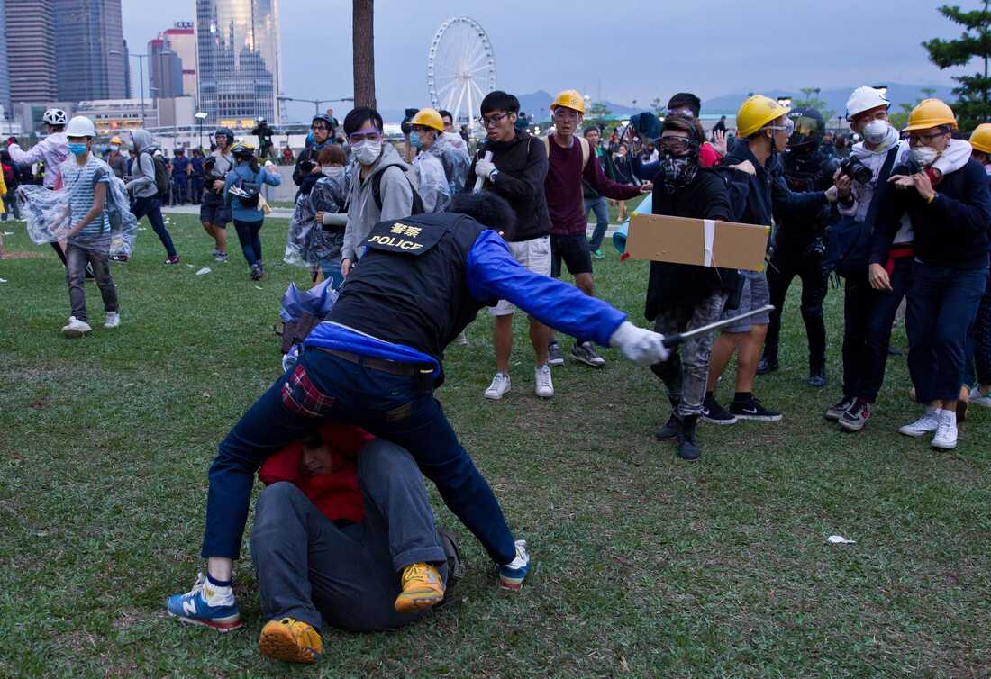 As The New York Times reports, police responded with batons and tear gas to repel the protesters. For weeks now, the government and protesters had reached an understanding that allowed protesters to remain while letting government workers — including the territory's chief executive — get to work.