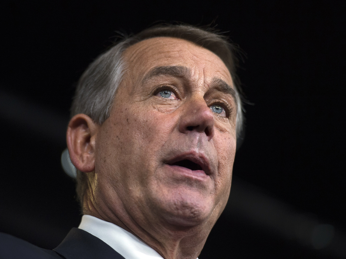House Speaker John Boehner, R-Ohio, speaks during a news briefing in the U.S. Capitol in Washington on Thursday. Boehner's office announced today that he would travel to Israel at the end of the month. Molly Riley/AP hide caption