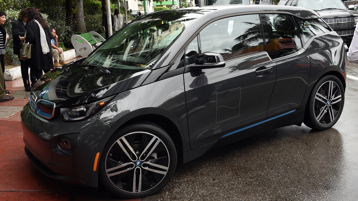 The fleet of U.S. vehicles has kept its fuel efficiency at a record high, the EPA says. Here, an electric BMW i3 is seen in Miami. Nicholas Hunt/Getty Images hide caption