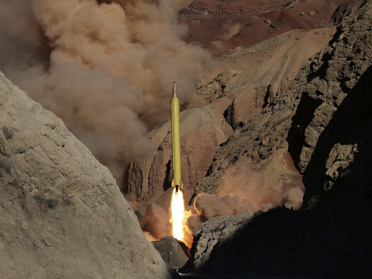 A ballistic surface-to-surface missile is fired by Iran's Revolutionary Guard, during a maneuver, in an undisclosed location in Iran on Wednesday.