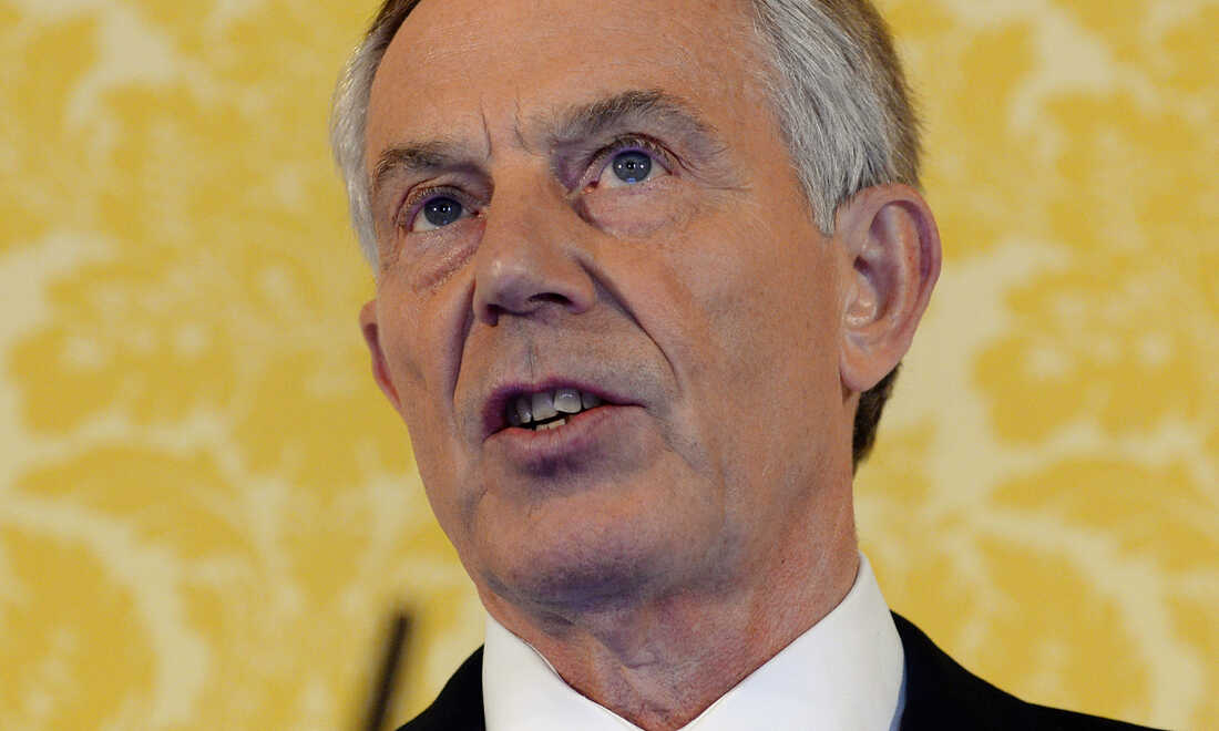 Former British Prime Minister Tony Blair holds a news conference at Admiralty House in London after retired civil servant John Chilcot presented The Iraq Inquiry Report on Wednesday. Stefan Rousseau/AP hide caption