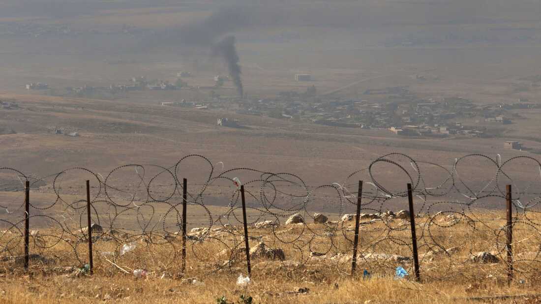 A picture taken from the top of Mount Zardak, about 25 kilometers east of Mosul, shows smoke billowing in the Iraqi city of Nineveh during an operation against the Islamic State on Monday — part of a broad operation to retake the city from the Islamic State group. Safin Hamed/AFP/Getty Images hide caption