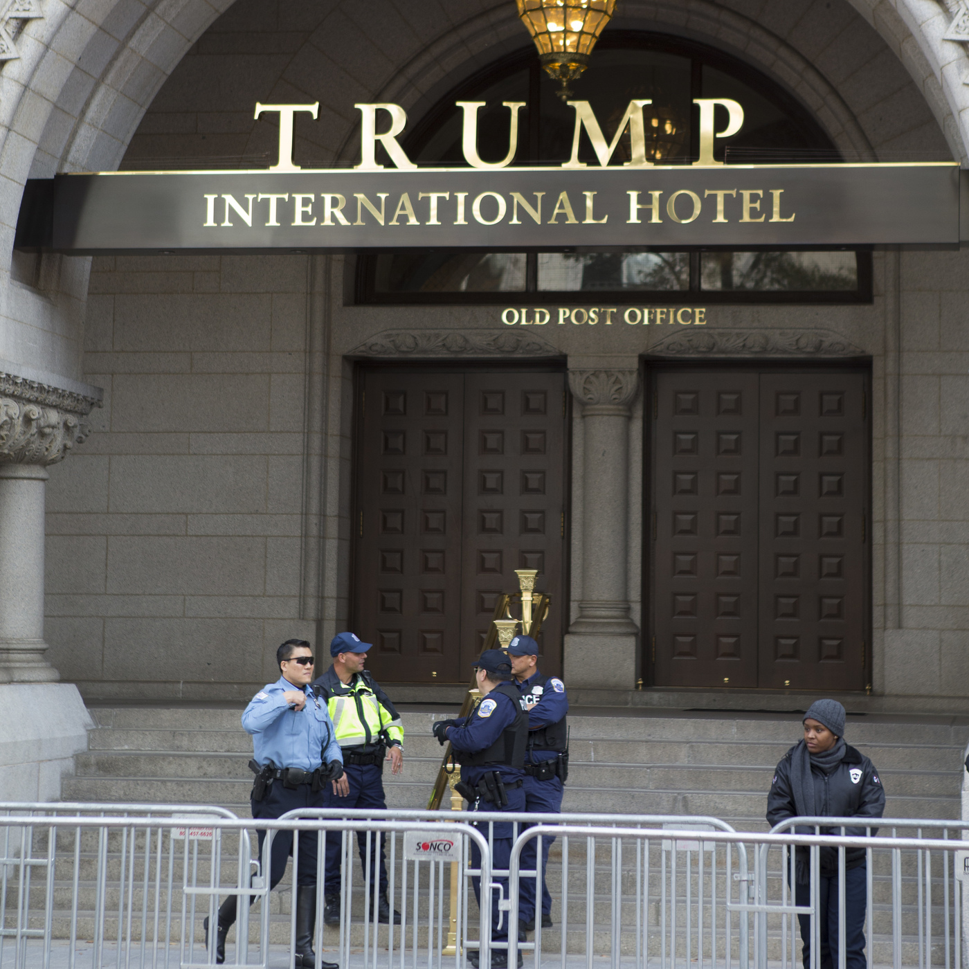 President-elect Donald Trump's organization holds the lease on, and has opened a hotel in, a prominent building in Washington, D.C., one of many business interests that could lead to conflicts with his role as president. Jon Elswick/AP hide caption