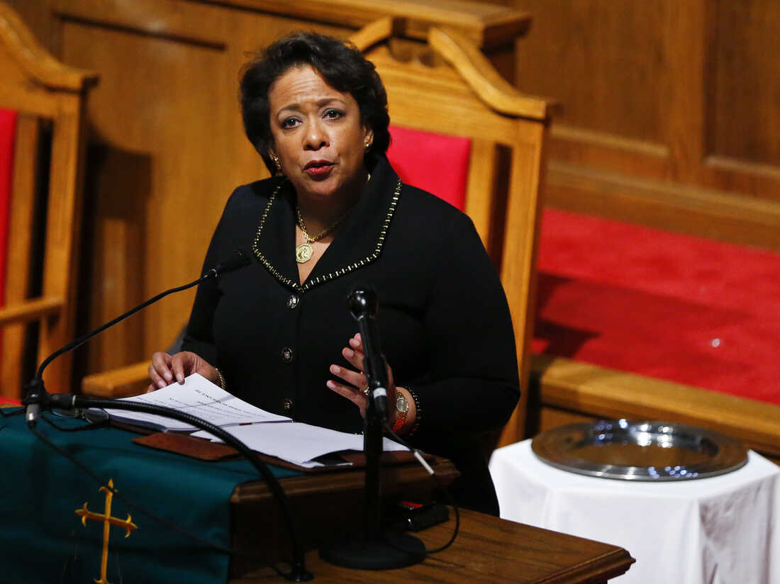 Attorney General Loretta Lynch speaks at the 16th Street Baptist Church in Birmingham, Ala., Sunday.
