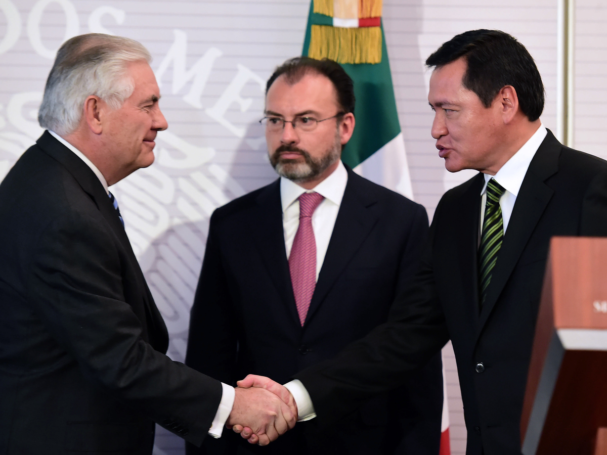 Ronaldo Schemidt/AFP/Getty ImagesAt a joint news conference in Mexico City on Thursday, Secretary of State Rex Tillerson acknowledged the tension between the U.S. and Mexico. After talks with his Mexican counterpart, Foreign Minister Luis Videgaray, Tillerson said that "in a relationship filled with vibrant colors, two strong sovereign countries, from time to time, will have differences."