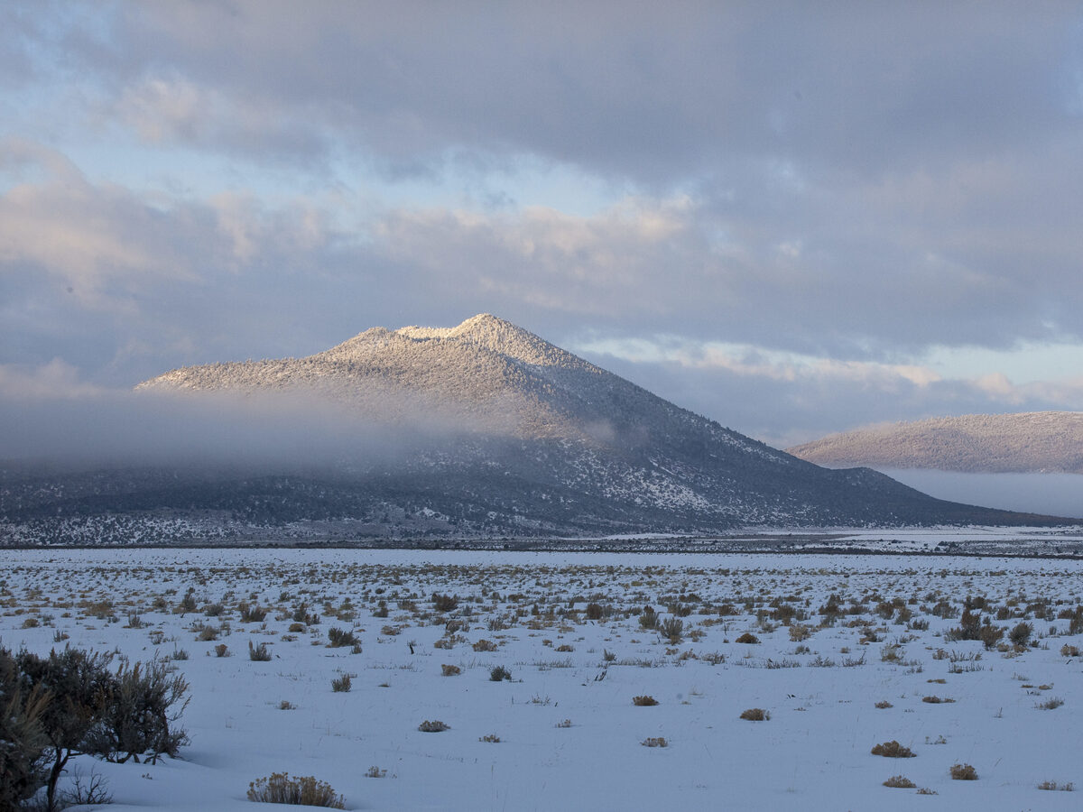 The Rio Grande del Norte National Monument features great heights, like this peak towering over the snow.
