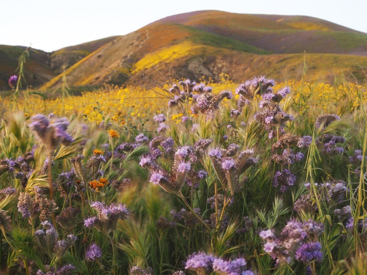 Wildflowers cover the hills of the Tremblor Range in Carrizo Plain National Monument near Taft, Calif., during a wildflower "super bloom" earlier this month.