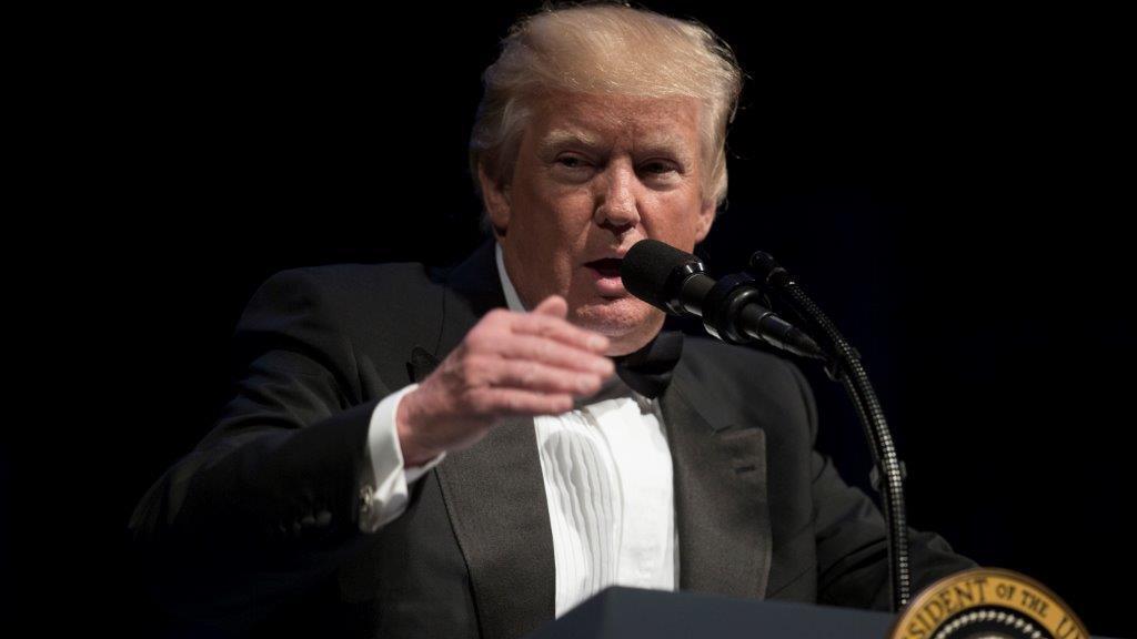 President Trump speaks Sunday night during the gala to raise money for Ford's Theatre in Washington, D.C.