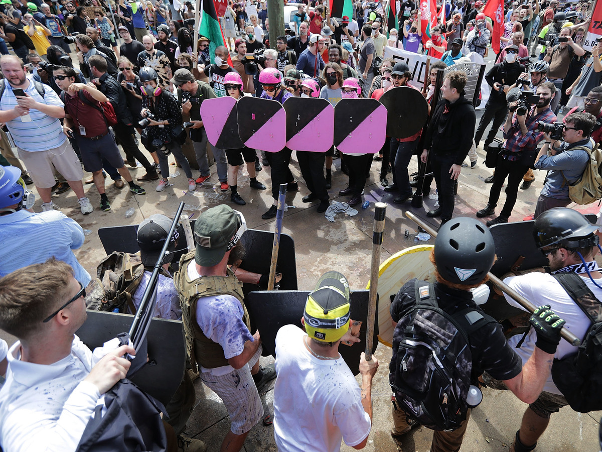 Following the weekend's violent clashes around a white nationalist demonstration in Charlottesville, Va., some are asking what authorities could have done differently. Above, demonstrators and counter-protestors face off at the entrance to Emancipation Park during Saturday's "Unite the Right" rally. Chip Somodevilla/Getty Images hide caption