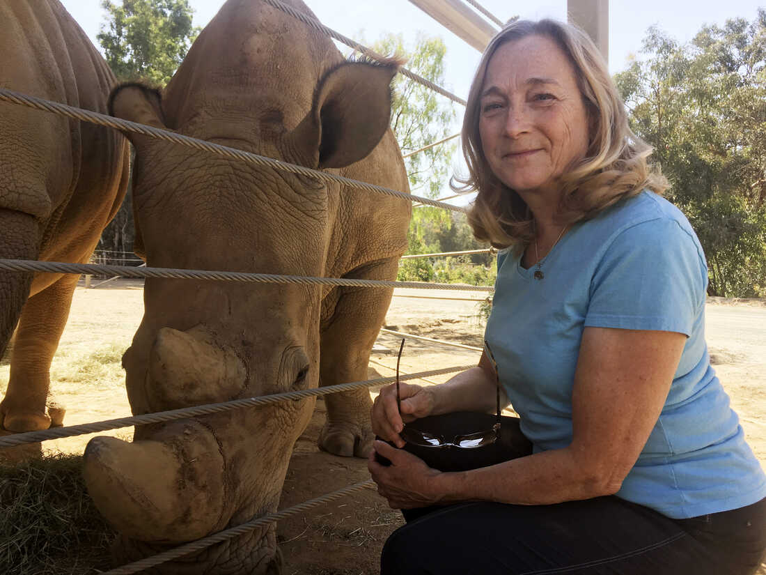 A southern white rhino named Victoria is two months pregnant. Barbara Durrant, director of reproductive sciences at the San Diego Zoo Institute for Conservation Research, announced the news on Thursday. Julie Watson/AP hide caption