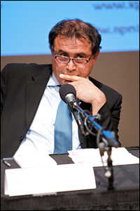 Economist Nouriel Roubini was among the panelists arguing in favor of the proposition, "Blame Washington More Than Wall Street for the Financial Crisis." Kevin Wick/Longview Photography hide caption