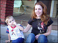 Spc. Timothy Hanley's widow, Markel, and their son, Tim Jr., sit on the porch of their home in Hopkinsville, Ky. Hanley killed himself in September 2007, a year after returning from Iraq. Blake Farmer for NPR hide caption