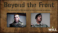 Soldiers now use an interactive video to role play as the buddy of another soldier in crisis. The choices made at the end of each scene lead either to finding help for this imaginary soldier or attending his funeral. Will Interactive hide caption