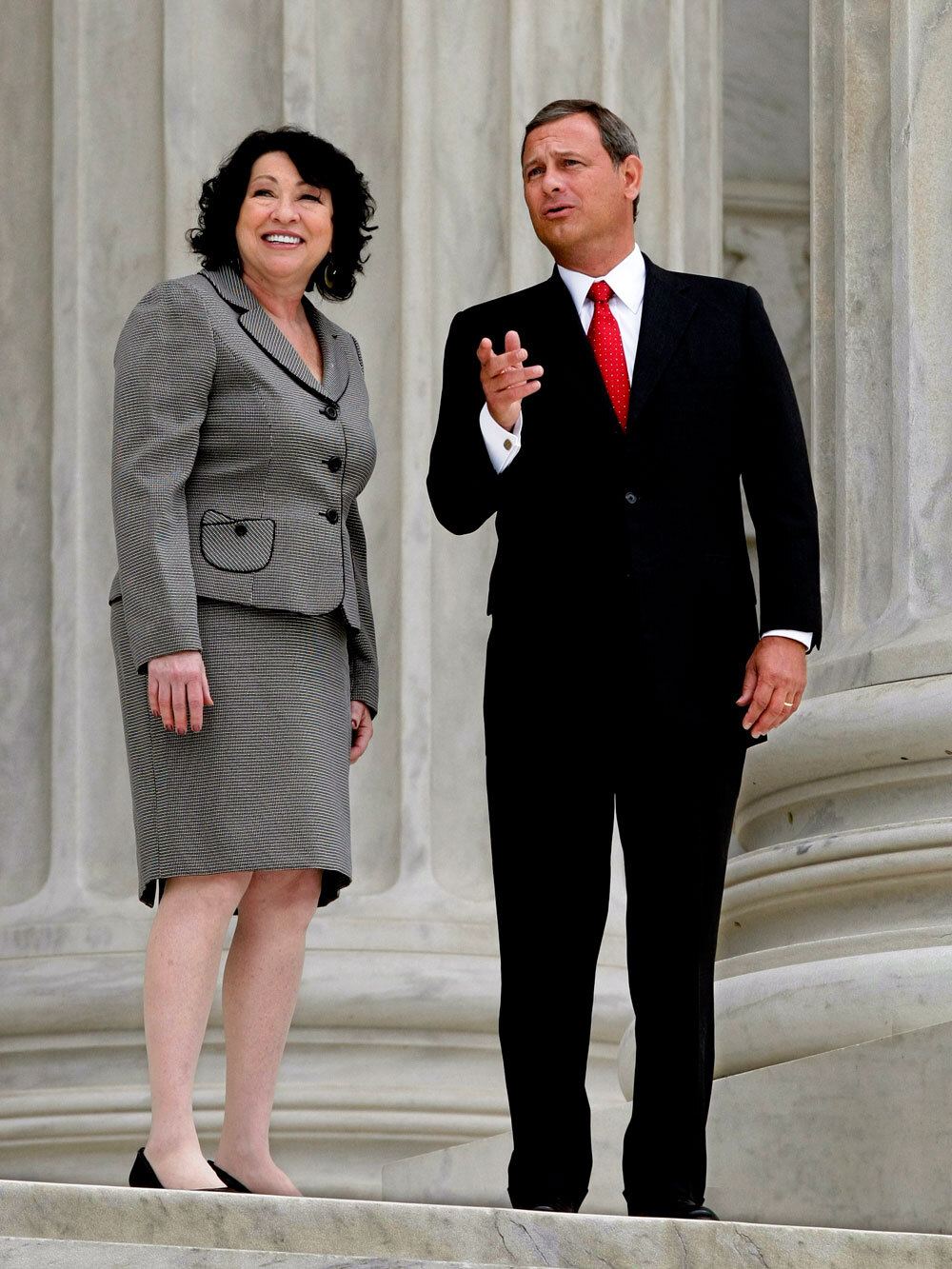 Sotomayor is escorted by Chief Justice John Roberts following her investiture ceremony at the Supreme Court on Tuesday.