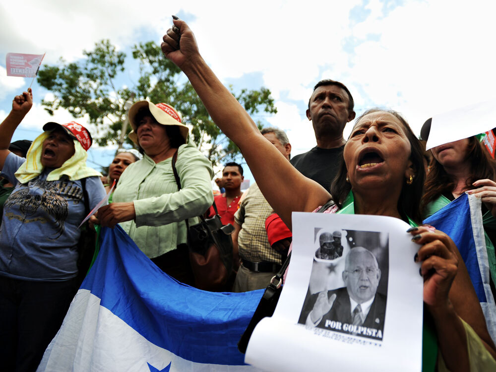 Supporters of deposed Honduran President Manuel Zelaya protest Saturday in the El Pedregal neighborhood of Tegucigalpa, the Honduran capital.