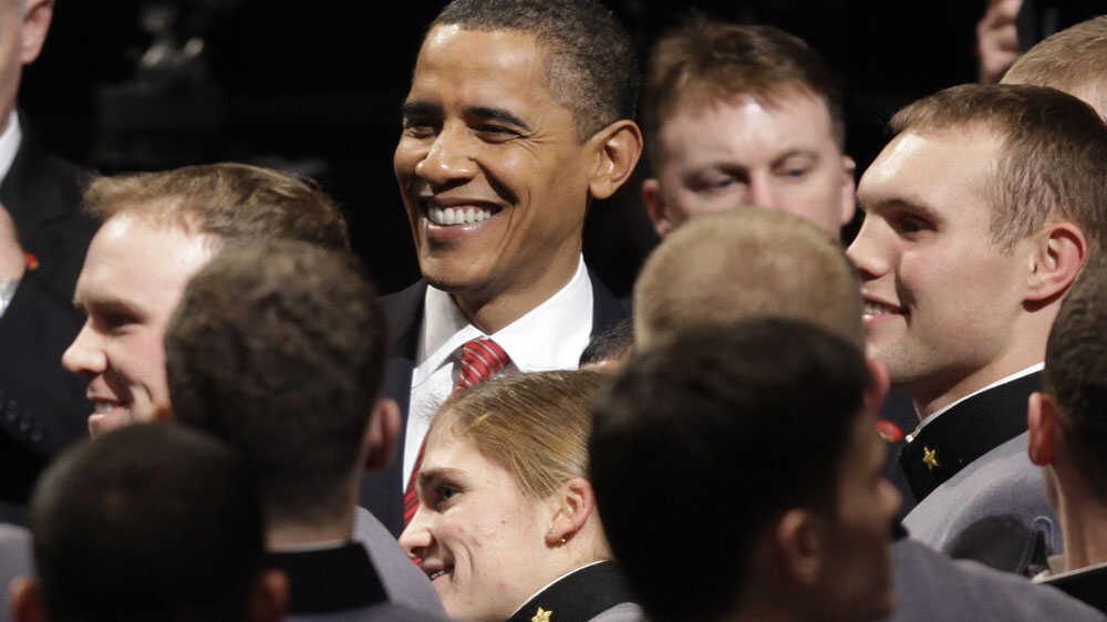President Obama with cadets after speaking about his Afghanistan policy at the U.S. Military Academy at West Point, N.Y.