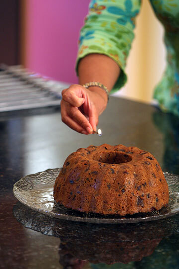 • It's fun to make. The batter for the cake comes together very quickly (you don't need anything more special than a whisk in the equipment department) and cooks in a most unusual way: It gets steamed for a couple of hours, so while it's cooking, you hear a rat-a-tat-tat as it rocks gently in its water bath, and you have the pleasure of being in a kitchen fragrant with sugar, spice and spirits.
