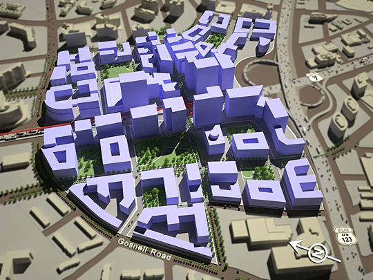 Tysons 7, on the west end of Tysons Corner, is a small section of the sprawling suburban mall. Below is an image of how the area currently looks — and what the urban planners have visualized for redevelopment.