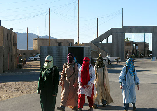 During the training, hired actors play the roles of Afghan locals.
